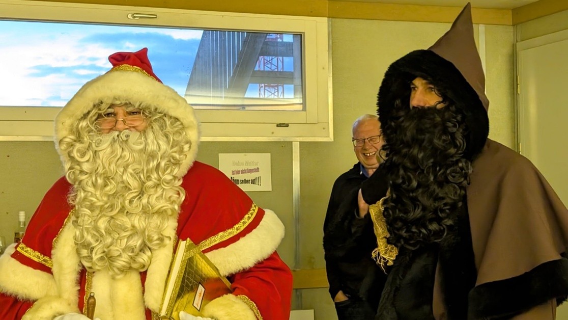 Mitten im Schiessen erschien der Samichlaus. Traditionell durfte ein Sprüchlein aufgesagt werden. Einige erinnerten sich noch an Verse aus der Kindheit, andere griffen kurzerhand zum Handy. Glücklicherweise hatte der Samichlaus keine Fitze dabei, sondern verteilte kleine Geschenke an alle.