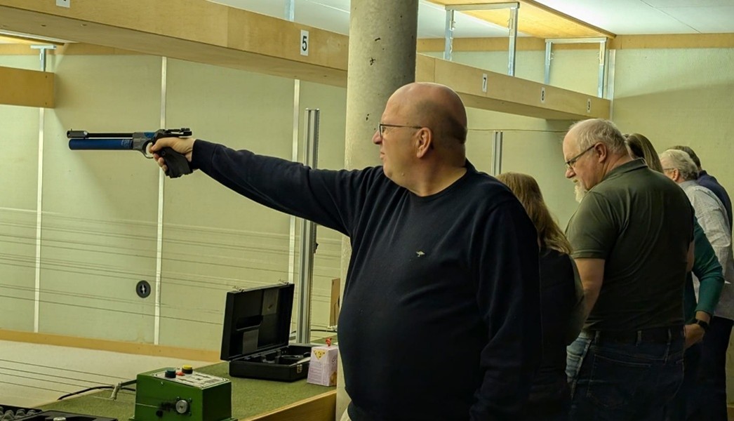 Um 16.00 Uhr wechselte die Gesellschaft in den 10m-Stand des PC Stammertals. Dort übten sich Vorstand und Ehrenmitglieder samt Begleitung im Luftpistolenschiessen. Die lockere Atmosphäre sorgte für viele spannende Versuche und manches Schmunzeln über die eigenen Trefferbilder.